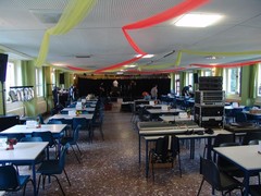 Heute war unser oberstes Ziel erstmal, überhaupt spielen zu können. So sind wir kein Risiko eingegangen, haben die Freilichtbühne dieses Jahr unbespielt gelassen und haben dafür den Speisesaal des KiEZ "Inselparadies" gewählt.