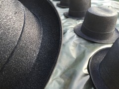 Unsere Hüte haben zwar keine Ecken, aber dafür viel Rhythmus in der Krempe. Nachdem wir sie wieder etwas aufgehübscht haben, sind sie bereit für unsere neue Show.